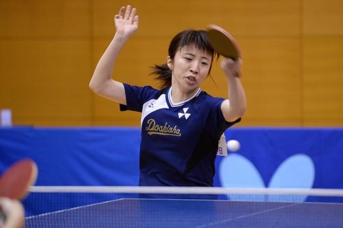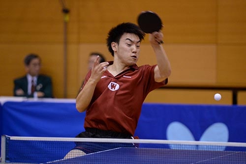 3位には全日本ベスト8、全日学2位の実力者、高橋(同志社大)が入った。4位の劉笑利はコース取りの厳しい前陣両ハンドドライブで勝ち上がったが、温馨との留学生対決に敗れベスト4に終わった。