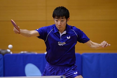 全日学で決勝を争った森薗(明治大)と大島(早稲田大)が欠場したほか、予選リーグでは全日学3位の田添が敗れるなどの波乱もあり、決勝トーナメントは混戦が予想された。その中、勝ち上がったのが、1回戦で高校の同級生の定松(中央大)を破り、準決勝では厚谷(専修大)を相手に最終ゲーム6-10からの大逆転劇を演じた上村と、準々決勝で留学生の郭師(埼玉工業大)、準決勝で先輩の町(明治大)をパワフルな速攻で破った酒井(明治大)が決勝進出を果たした。