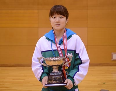 女子シングルスは、インカレ優勝、全日学ダブルス優勝など波に乗る安藤(専修大)が、1年生ながら実力者を連破して全国大会シングルス初優勝を飾った。