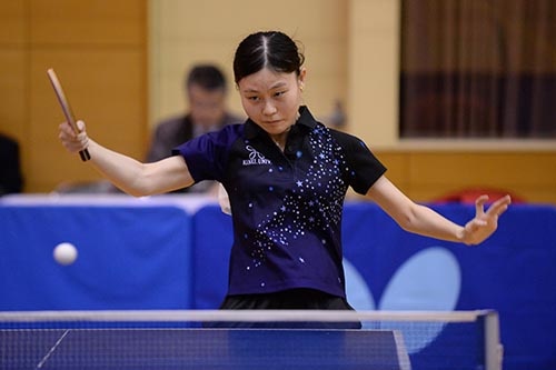 厳しい前陣両ハンドドライブの劉笑利は4位