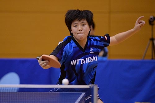 安藤は本人も1番苦しかったと語る準々決勝の徳永(早稲田大)との熱戦を、バッククロスへのシュート気味のフォアハンドスマッシュで乗り切り、準決勝へ。準決勝では安定感のある高橋を相手に両ハンドの強打で先手を取ってストレート勝ちで決勝進出を決めた。一方の温馨(日体大)はタイトルホルダー。2連覇を狙って、準決勝では劉笑利(近畿大)との留学生対決を回転量の多いパワフルな両ハンドドライブで決めて決勝進出。
