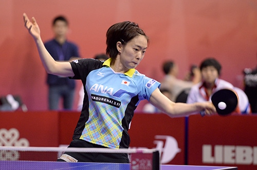 続く第2ゲームも福原はサービスからの3球目攻撃で着実に得点を重ねる。力のあるリ・ミギョンのドライブに対してはブロックで左右に揺さぶり、チャンスをつくり出すなど、付け入る隙を与えないプレーでゲームを連取した。