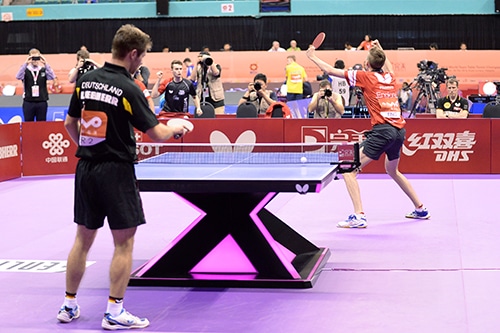 13時から行われた男子第1ステージのグループBでは、ドイツがイングランドと対戦。前日、エースのボルが2点を奪われてフランスに敗戦を喫したドイツ。この日は、シュテーガー、メンゲルを2点起用し、フランチスカを3番に配置するオーダーでイングランド戦に臨んだが、1対3で敗戦。2番のフィルスが一矢報いるも、昨日に続く連敗となった。
