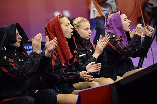 オーストリアはオランダと対戦し、3対0で勝利。1番はリュウ・ジャ対リ・ジエ。第1ゲームから積極的に攻撃を織り交ぜてくるカット主戦型のリ・ジエに対して、リュウ・ジャは落ち着いて対応。10-9とゲームポイントを迎えた場面でもリ・ジエの攻勢を跳ね返して第1ゲームを連取。その後も、丁寧なプレーで好機を伺い、チャンスでは確実に強打を決める形で得点を挙げて、3対0でオランダから先制点を挙げた。続く2番のリ・チャンピンもリ・ジャオに3対0で勝利。あとがなくなったオランダは3番でエアランドがバックを的確に突いたプレーでポルカノバに勝利すると、4番のリ・ジャオがリュウ・ジャの攻撃を封じ込めて2対2で5番勝負へともつれた。5番はリ・チャンピンが丁寧なつなぎに対してリ・ジエが粘り、最終ゲームに突入。最後は促進ルールの中で得点を重ねたリ・ジエが勝利を収めた。3時間以上におよぶ熱く長い戦いを制したオランダ。中国の待つ準々決勝へ駒を進めた。
