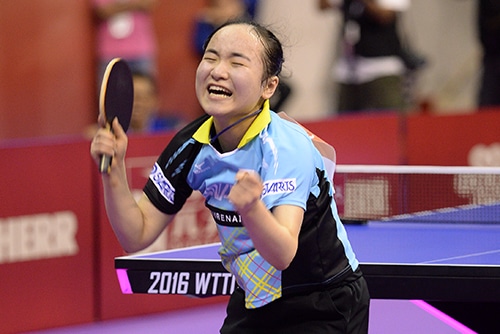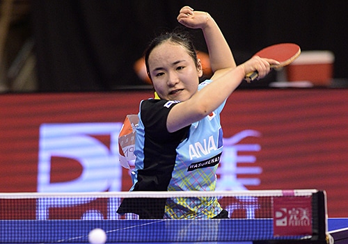 試合後はほっとしました。こんなに苦しい試合はなかったので、1試合目は自分の調子の悪さにびっくりしてしまいました。4番は初めての対戦だったので思い切っていくしかないという気持ちで戦いました。リ・ミョンスン選手はフォアカットがいやらしかったのですが、2ゲーム目の中盤からは逆にそれを狙うという戦術でいきました。予選リーグと違い、卓球台にも慣れてきていて、ドライブを打っても返球されたので、今日の試合はドライブで変化をつくってチャンスをつくり、スマッシュで決めるという形が今日の自分にできることだと思っていました。ミスをしてもスマッシュで決めるところは決めるという思いでプレーしました。(第3ゲームは)とりたかった気持ちはありましたが、どっちかが勝ってどっちかが負けるのが試合なので、しょうがないかなと思いました。内容は良かったので次に生かせるだろうと、吹っ切れて次のゲームに臨めたので良かったです。(最終ゲームは)競ってきたらお互いに緊張でかたくなるので、そこではミスをせずにいくところはしっかり決めにいくというのを心がけて、最後は相手も力んでいてミスが出ていました。初の世界卓球で決勝にいけたのはうれしいです。決勝は誰と対戦するかはわかりませんが思い切って自分のプレーができるようにしたいです。