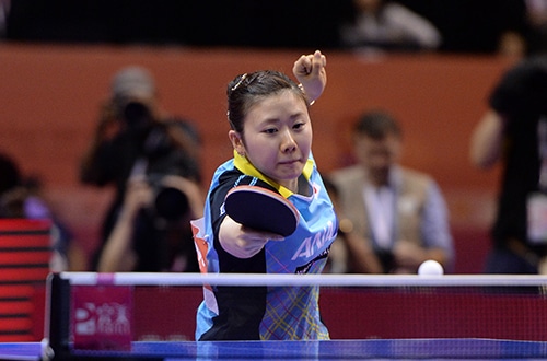 苦しい立ち上がりとなった日本は2番で石川が登場。李暁霞と対戦した。序盤、石川は李暁霞のフォア前とバック深くにボールを集めてゲームをリード。李暁霞の得意なラリー戦に持ち込ませず第1ゲームを先取した。