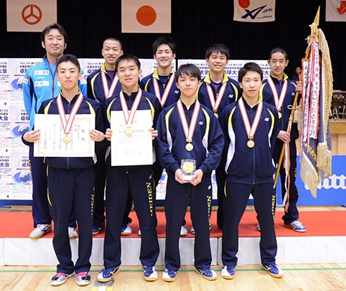 2台進行で行われた決勝は、全日本ジュニア3位の野田学園・伊丹が1番で登場し、愛工大名電の高見と対戦。高見はバック対バックから先に回り込むなどアグレッシブなプレーで伊丹を破り貴重な勝ち星を挙げると、2番は高校生チャンプの木造が遠藤の思い切りのいいカウンタープレーに1ゲームを奪われながらも、質の高い台上プレーなどで差を付け愛工大名電が優勝に王手をかけた。ダブルスでも高校生王者ペアの松山/木造がストレートで伊丹/沼村を破り、愛工大名電が予選リーグから無失点で2年連続の優勝を決めた。