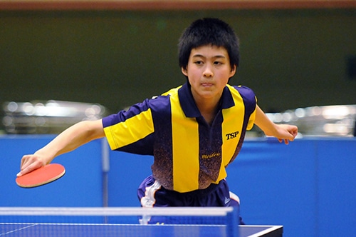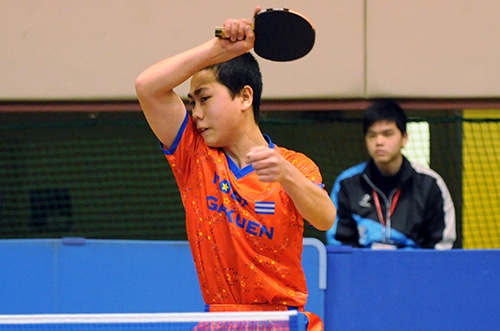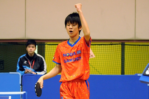 2番はカットの白山(愛工大附属)と戸上(野田学園)の対戦。第1ゲームの序盤から戸上が猛烈なカット打ちでリードしたが、白山が変化のあるカットでこのゲームを逆転で奪うと、一気に流れが白山に向いた。戸上も負けずに粘り強く戦ったが、最後は力尽きて敗れた。野田学園が愛工大附属に勝つためには、戸上の得点は必須だっただけに手痛い負けになった。