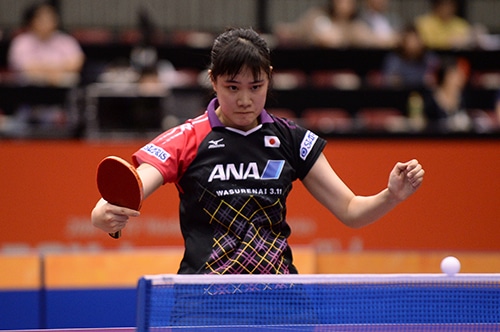 早田は橋本帆乃香(四天王寺高)に3対1で勝利。1ゲームを先取された早田だが、第2ゲーム以降は、威力のあるドライブで試合の主導権を握ると、最後まで攻撃的な姿勢を崩さずにベスト4への切符を手にした。打球点の早い攻撃を確実に決めるなど、精度の高いプレーが光った。