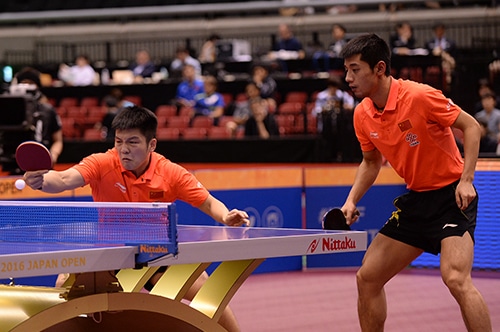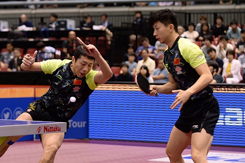 樊振東(左)/張継科は台上のボールを積極的に攻めるも勝利ならず