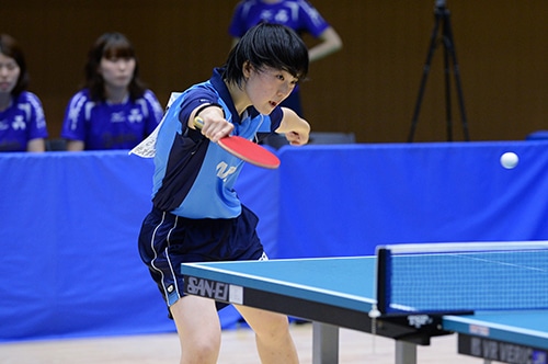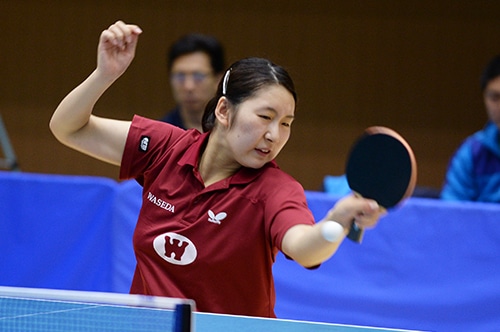 続く3番ダブルスは高橋/谷岡が攻撃とカットの変則ペアによる攻撃で揺さぶり阿部/徳永に勝利し、1点を返す。4番は徳永と前瀧の対戦。ゆっくりとしたリズムで丁寧なプレーをする徳永が前瀧の果敢な攻撃に対応して3対1で勝利し、試合を決めた。早稲田大学は悲願の初優勝を果たした。
