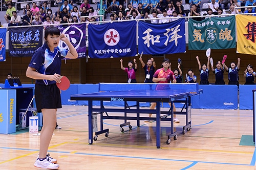 女子団体決勝トーナメントの組み合わせ明徳義塾は第1ステージで玖珂に0対2と追い込まれたところから逆転勝ち。ダブルスも0-2とされたが、土俵際で踏ん張ると、最後は5番の三村がゲームオールの末に山本に勝利した。