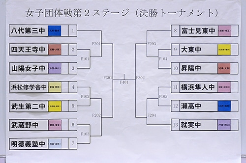女子団体の第1ステージでは、昨年の覇者、明徳義塾が苦しみながらも予選を突破した。このほか、昨年の上位進出校が決勝トーナメントへと勝ち上がった。