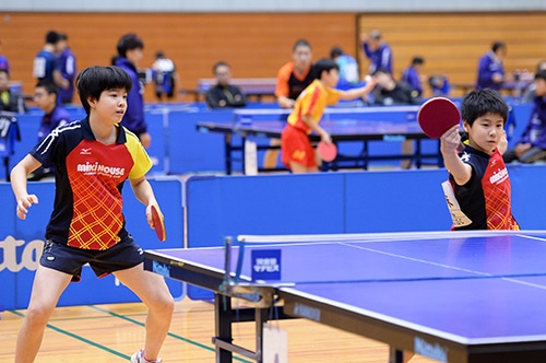 女子ダブルスは大川・中森(ミキハウスJSC)が優勝を果たした。中森がコースを突いてチャンスをつくり、大川が決めるパターンが良かった。