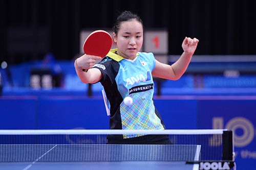 日本は平野、伊藤、早田という高校1年生の3人を起用。トップの平野は威力のある両ハンドで危なげなくストレート勝ち。