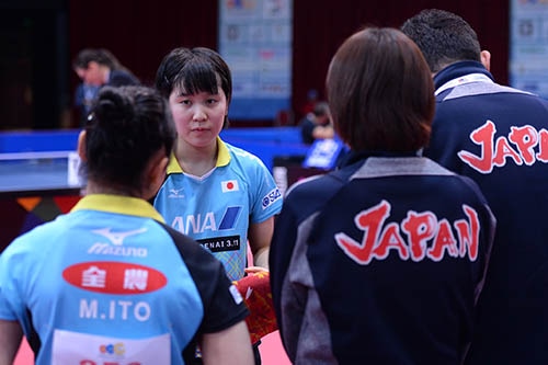 トップの伊藤は緩急を付けたバックハンドでチャンスをつくる余裕のある内容で日本が先制点を奪ったが、2番の平野は、多彩でミスの少ないバックハンドのディアコヌにラリーで好機を見いだせないまま力負け。