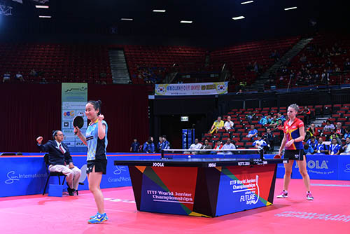 大会2日目は男女団体の第3ステージ(決勝トーナメント)が行われ、日本女子は準々決勝でルーマニアと対戦し、3対1で勝利し準決勝に駒を進めた。