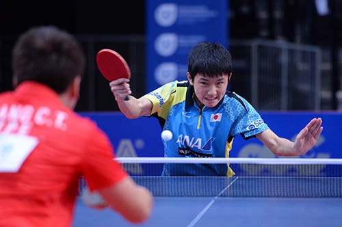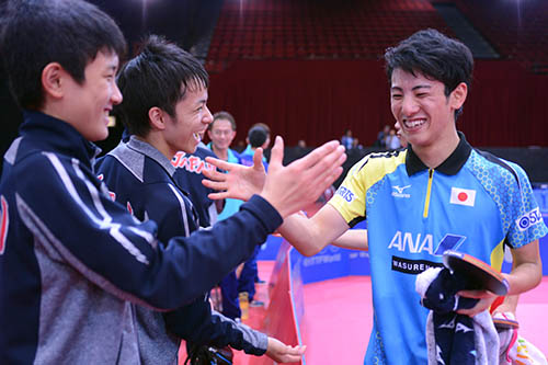 ここまで日本の連勝を支えてきた松山は3番で、持ち前のラリー戦に強さを発揮して、3番手の馮翊新を危なげなく退けた。