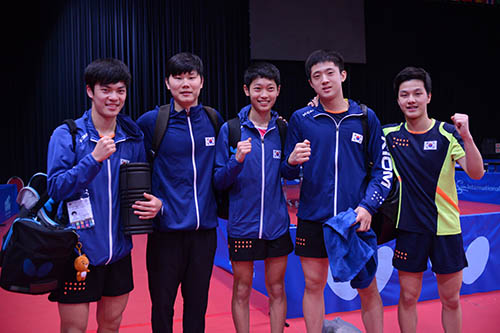 今年の9月に行われたアジアジュニア選手権大会において、男子団体の決勝で中国を破る大金星を挙げた韓国。そのときの主力2人を2点起用して、再び打倒中国を目指した。