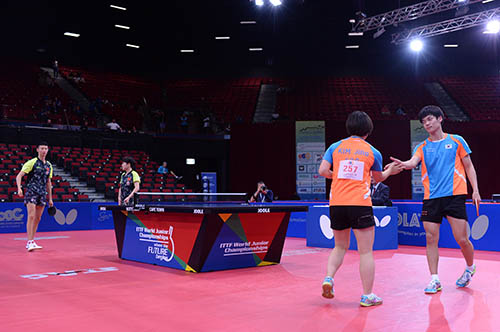 韓国ペア対中国ペアの一戦は、男子の意地のぶつかり合いのようなチキータ合戦になったが、1発の威力で優る趙勝敏が主導権を握り、豪打の徐海東にプレーをさせず4対2で中国ペアを破った。今大会、趙勝敏は男子団体を初め、男子シングルス、男子ダブルスと全種目で中国を破っている。今後、シニアでも注目の選手となるだろう。