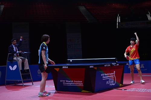 麦子詠対ディアコヌは第1ゲームでディアコヌが10-6とリードしたところから逆転を許し、流れは一気に麦子詠に。第1ゲームを落としたことを引きずったか、ディアコヌのプレーにミスが目立つ。一方の麦子詠は前陣両ハンドの安定感では今大会随一。ディアコヌは得意の多彩なバックハンドを見せるまもなく敗れてしまった。
