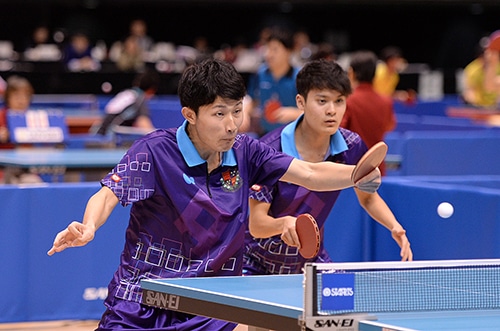 宇田/張本は和田航大/神京夏(愛知工業大)と対戦。第1、第2ゲームは固さの見える宇田/張本に対して和田/神が試合の主導権を握り、ゲームを連取した。後がなくなった宇田/張本だが、第3ゲームからはミスの少ない安定したプレーで流れを引き戻す。第3、第4ゲームを連取して最終ゲームへ持ち込むと、最後は連係の良さを見せて11-3で勝利。苦しい試合をものにした。