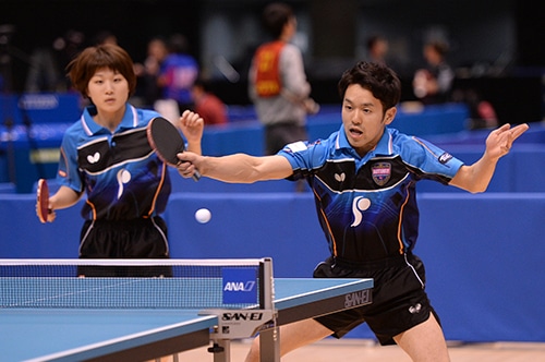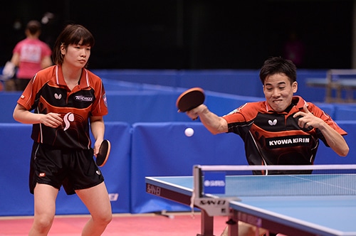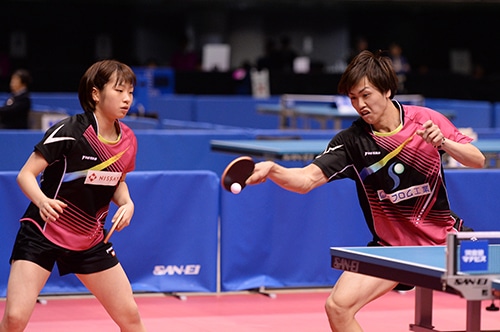 卓球日本一をかけて平成28年度全日本選手権大会が1月16~22日まで東京体育館で開催されている。大会2日目の混合ダブルス3回戦では、前年度王者の田添/前田(専修大/日本生命)、吉村/石川(名古屋ダイハツ/全農)らが勝ち上がる一方で、前年度2位の宮本/高橋(中央大/十六銀行)が敗れる波乱があった。