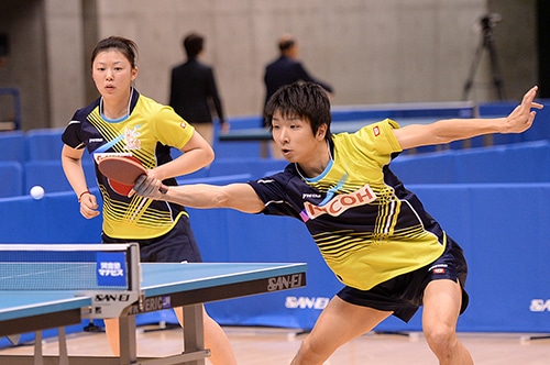 宮本/高橋は鹿屋/阿部(リコー/サンリツ)と対戦。序盤から鹿屋の強力な両ハンドドライブと阿部のスマッシュにゲームの主導権を握られ、プレーの流れをつかむことができなかった。1ゲームを奪い一市区は報いたが、昨年に続く上位進出とはならなかった。このほか、前年度優勝の田添/前田、上位進出が予想される吉村/石川、及川/安藤(専修大)らがベスト16進出を果たした。混合ダブルスは明日、4回戦~準々決勝が行われる。