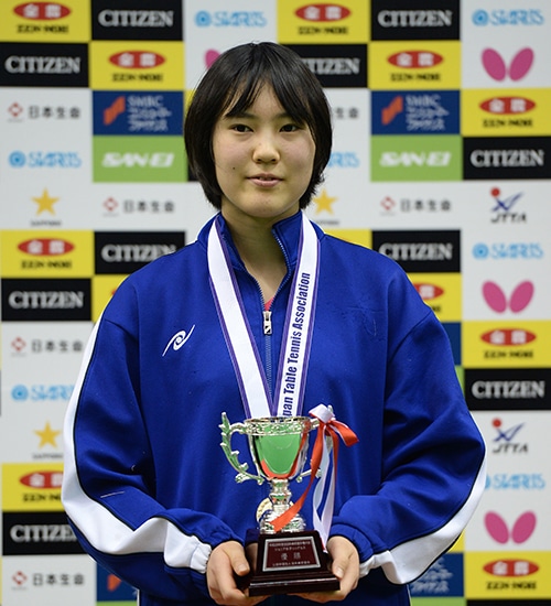 「今まで納得いく結果が得られなかったので今回の優勝はうれしいです。しかし、実力はまだまだなので、また明日から練習を頑張りたいと思います。今までは一辺倒な攻撃しかできませんでしたが、緩急や回転を利用したプレーができるようになったことが勝利の要因だと思います。これからは、どんどん海外でも活躍したいです。伊藤選手や平野選手、早田選手は年下ですが格上なので、そういった選手に追いついて負けないようになりたいです」