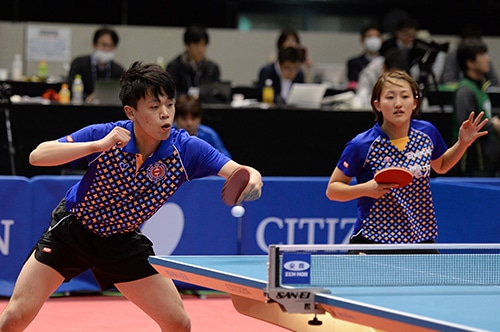 両ペアは平成24年度の決勝でも対戦しており、そのときは田添/前田が勝利を収めている。今大会の決勝も田添/前田が思い切りの良いプレーで第1、第2ゲームを連取して試合を優位に進めた。「決勝は思い切ってプレーするだけでした」と前田が語るように、王者ではあるが決して受け身になることなく、攻めの姿勢を貫いてゲームの主導権を握った。