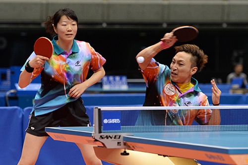 互いに2ゲームずつを取り合って迎えた最終ゲームは田添/前田が先手を仕掛けて得点を重ねる展開が続く。「5ゲーム目は先手を取れずに後手に回ってしまった」と吉村が語るように吉村/石川は、ゲームのペースを握ることができず。一方の田添/前田は田添の中陣からのドライブと前田の前陣でのプレーで攻め切って11-6で勝利。見事、2年連続3度目のミックスチャンピオンとなった。