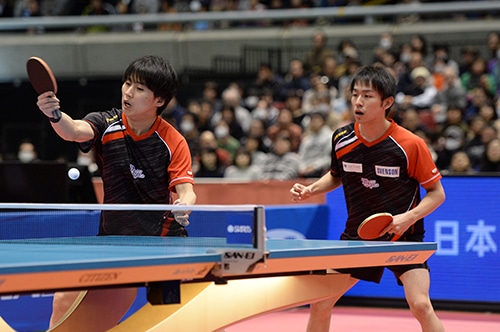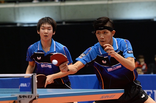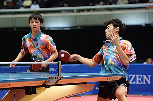 丹羽(右)/酒井が接戦を制して、男子ダブルスの頂点に立つ!