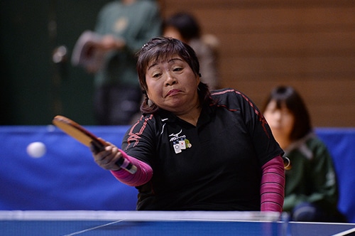 車いす女子の部G2は大下民子(神奈川)が優勝。大下はロングサービスからの3球目強打など、サービスからの展開でラリーを優位に進めるプレーが光り、5選手によるリーグ戦を制して初優勝を果たした。