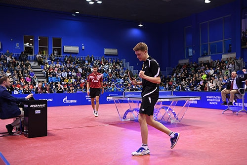 4番はスミルノフ対フェゲアル。オレンブルク出身のスミルノフに会場からは大きな声援が送られ、フェゲアルと一進一退の攻防を見せるが、最終ゲームで逆転を許し、デュッセルドルフが2点を返し勝負はラストに。