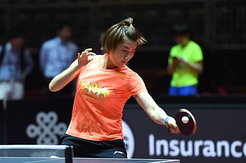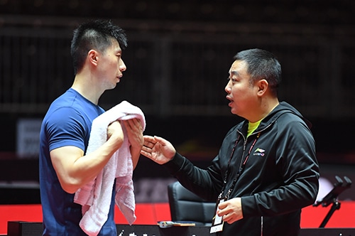 メインコートに姿を見せた中国チーム。世界チャンピオンの馬龍は樊振東と練習し、ハイレベルなプレーを見せた。練習後は劉国梁総監督からアドバイスを受けた。また、2度、世界選手権を制している張継科はフォアハンド、バックハンドの連打で調子を確かめるように練習に臨んだ。連覇を狙う女王・丁寧は武楊とのカット打ちにひたすら取り組んだ。苦手とされているカット主戦型への対策を入念に行った。このほか、優勝候補の一角の劉詩雯も練習。悲願の初優勝を狙う。