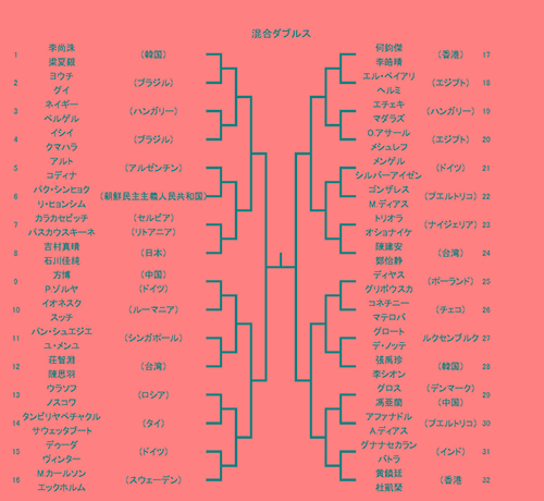 混合ダブルス32シード(2回戦以降)の組み合わせ
