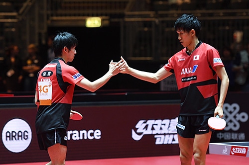 このほか、優勝候補の許昕/樊振東(中国)、馬龍/ボルの国際ペアも2回戦へと駒を進めた。第2シードのフランチスカ/グロート(ドイツ/デンマーク)はクリシャン/イオネスク(ルーマニア)に苦しめられたが、最後はゲームオールジュースの接戦を制した。