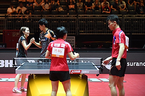 世界卓球2017デュッセルドルフ(5月29日~6月5日)の大会4日目がスタート。混合ダブルス3回戦では吉村/石川、田添/前田がともに勝利を収めてベスト8進出を果たした。