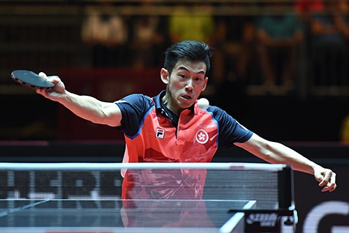 香港のエース・黄鎮廷はフォア面に表ラバーを貼るM.カールソンに苦戦。リードしながらも勝ちきれないゲームがあり、勝負は最終ゲームにもつれたが、最後は地力で勝る黄鎮廷が勝利。前回大会に続くベスト16入りを決めた。
