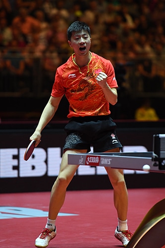 馬龍対ボルの試合を前に超満員にふくれあがったスタンド。試合開始前から大きな盛り上がりを見せた1戦は、第1ゲームを馬龍が先制。厳しい台上プレーから強烈なフォアハンドドライブを決めるなど、ラリーの主導権を握った。