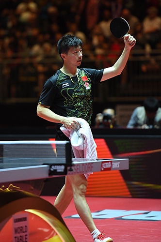 世界卓球2017デュッセルドルフの最終日は男子シングルス準決勝からスタート。馬龍(中国)対許昕(中国)の一戦は馬龍が許昕を4対0で破り、前回大会に続く決勝進出を決めた。