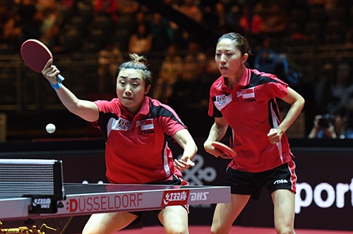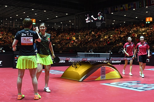 女子ダブルス準決勝は陳夢/朱雨玲の中国ペアと馮天薇/ユ・メンユのシンガポールペアが対戦。中国ペアが1ゲームを奪われながらもゲームカウント4対1で勝利して、決勝進出を決めた。