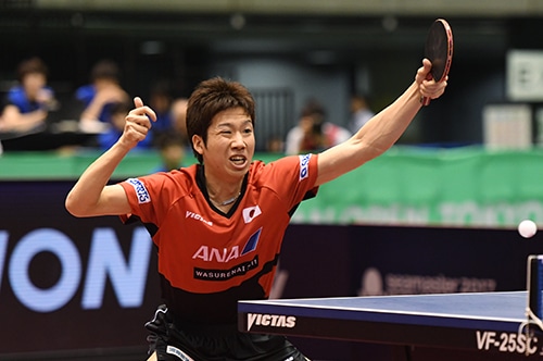 水谷は力のあるバックハンドで迫ったが惜しくも敗れた