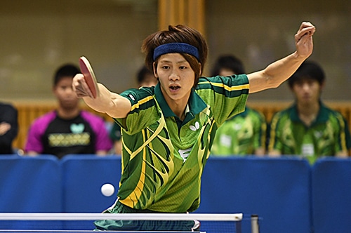 男子は明治大学と専修大学の対戦。明治大学はトップで1年生の龍崎が流れをつくった。関東学生で敗れた田添響に対して、気迫のこもった両ハンドプレーで攻め続け勝利し勢いをつかんだ。続く森薗と田添健汰の対戦。森薗のコース取りの良さとカウンターが冴えて勝利。続くダブルスは専修大学が意地を見せて取り返したが、4番酒井が威力のあるバックハンドドライブをさく裂させて去年に続き優勝を決めた。