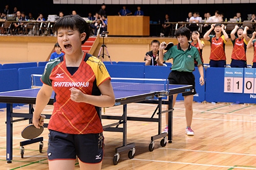 高校女子卓球界の絶対王者・四天王寺とそれを追う明徳義塾による対戦となった決勝。昨年の決勝も同じ組み合わせだったがそのときは3対0で四天王寺が勝利を収めている。