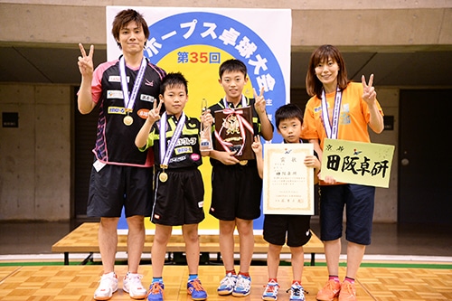 平成29年8月14~16日、東京体育館で第35回全国ホープス大会が開催された。全国の厳しい予選を勝ち抜いてきた小学生のチームが日本一の座を賭けて熱戦を展開。男子は田阪卓研(京都)、女子は石田卓球クラブ(福岡)が優勝を飾った。