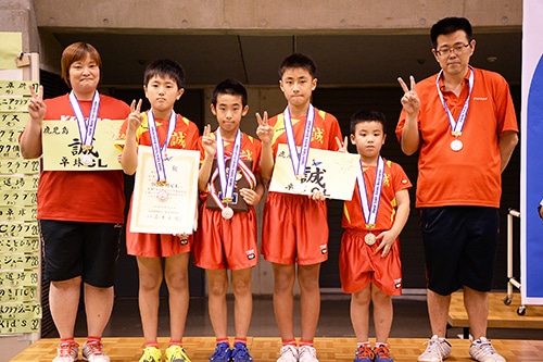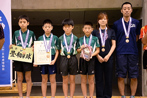 3位の畳和卓球はホープス優勝の中村(左から2番目)が牽引