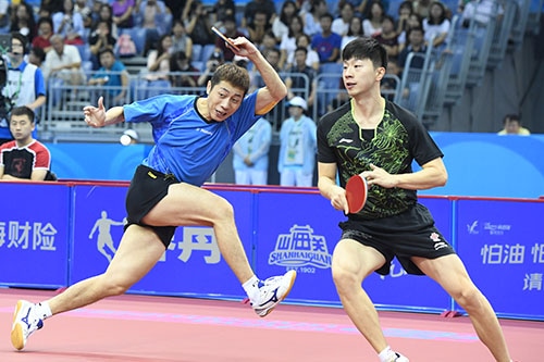 8月28日~9月6日まで、武清体育センター(武清)にて第13回全中国運動会が開催されている。大会8日目は男女ダブルス準々決勝と男女シングルスの準々決勝が行われる。午前の試合ではダブルスが行われ、準決勝に進出する男子4ペアが決まった。