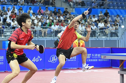 周雨/樊振東は、第1ゲーム序盤で樊振東が後陣から放った全力のフォアハンドドライブが周雨の後頭部に当たって、ボールが割れるという珍事が発生。珍しく樊振東が試合中に笑顔を見せた。試合は、一発で決めようとリスクを負ったプレーをする解放軍ペアにミスもあり競り合いとなるが、地力で優る解放軍ペアが順当に準決勝に駒を進めた。