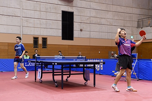 決勝の静岡県戦は、トップで木造が試合途中で左ひじを卓球台にぶつけるアクシデントがありながらもきっちりと勝利を収めると、2番の田中は第2ゲームの4-10から8連続得点で逆転するなど、ストレート勝ち。最後は髙見が安定感のあるプレーで連覇を決めた。今枝監督は「準決勝の山口県との試合は2点を取られましたが勝ててよかったです。決勝は2番で田中が第2ゲームを4-10からばん回してくれたことが優勝につながったと思います。あそこで逆転できたことで一気に楽になりました。非常に大きかったです」と喜びを語った。